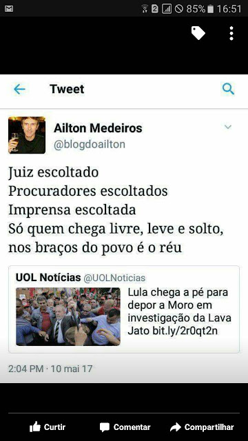 A verdade é que LULA é uma INSTITUIÇÃO, não há paralelo entre LULA e qualquer outro personagem da história brasileira, hoje quem persegue LULA ficou pequeno, menor que um anão, da estatura de um rato, com todo respeito aos anões e também aos ratos, mas só estamos falando de estatura.